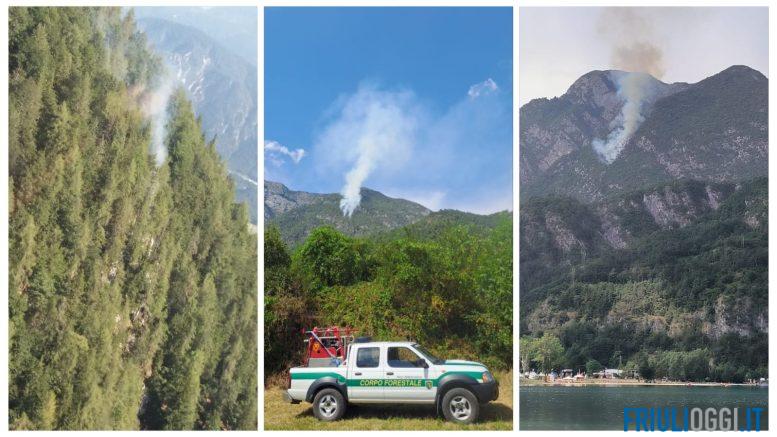 Doppio intervento di spegnimento di incendi per il Corpo forestale regionale. Il personale è intervenuto oggi, mercoledì 14 agosto, prima nel comune di Malborghetto-Valbruna e poco più tardi nei pressi del lago di Cavazzo, sul versante montuoso sopra l’abitato di Alesso, frazione del comune di Trasaghis.