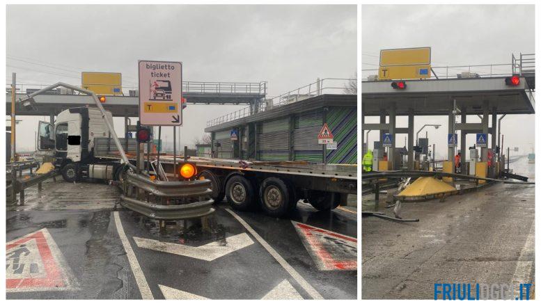 Una prima stima effettuata dai tecnici di Autostrade Alto Adriatico, giunti subito sul posto insieme alla polizia stradale e ai mezzi di soccorso meccanico, ha evidenziato gravi danneggiamenti alle strutture edili (barriere di sicurezza) e alla impiantistica del telepedaggio. In particolare, nell’urto l’autoarticolato ha divelto le barriere di sicurezza di entrambe le piste, i basamenti dei pali del telepedaggio, una sbarra, gli scanner ottici che rilevano e classificano i veicoli in transito e i semafori di ingresso alle porte.