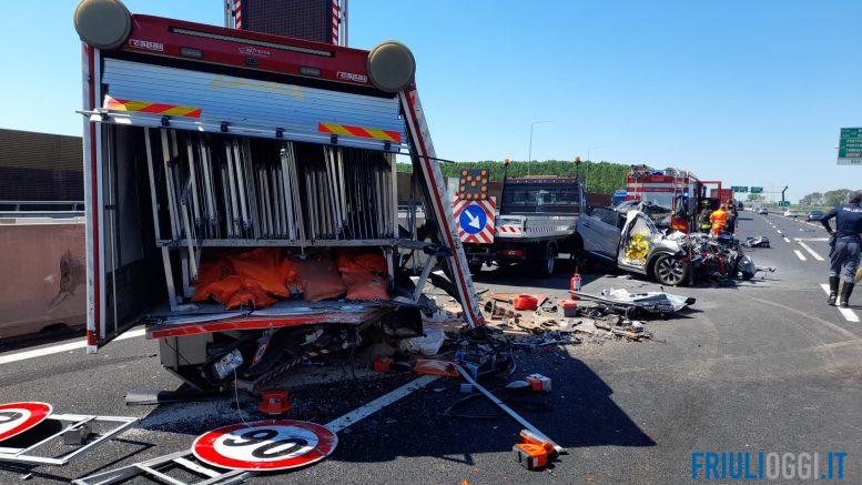 Tragico incidente oggi, 30 aprile, verso le 10,15 sull’autostrada A4 nel tratto a tre corsie tra Latisana e Portogruaro in direzione Venezia. Coinvolti nel sinistro un veicolo leggero e due mezzi della manutenzione stradale, uno di Autostrade Alto Adriatico e uno di una ditta esterna.