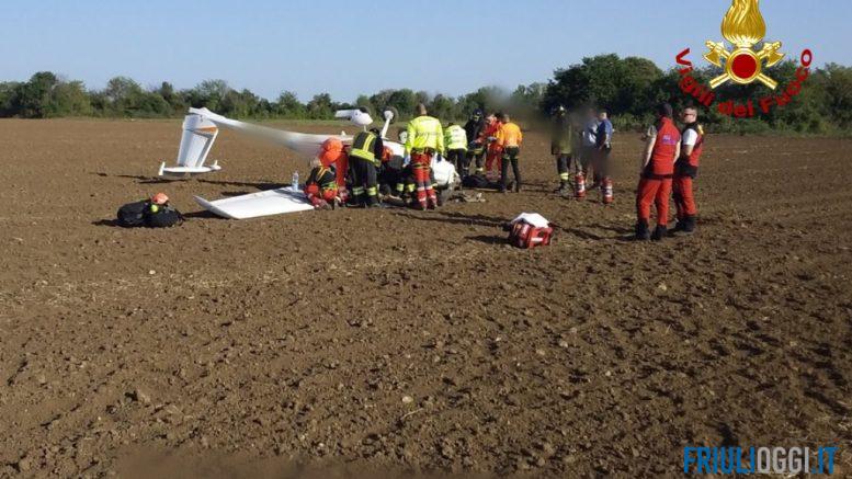 Incidente aereo alle porte di Udine dove un ultraleggero con due persone a bordo è precipitato poco dopo il decollo nei pressi dell’aeroporto di Campoformido.