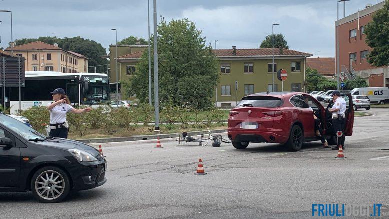 Incidente questa mattina nella rotatoria di piazzale d’Annunzio a Udine. Per cause ancora in corso di accertamento a scontrarsi sono state una bici e un’auto.