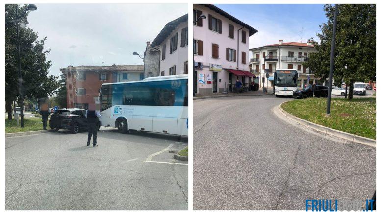 Incidente poco prima le 14 di questo pomeriggio alla rotonda di Pagnacco dove si sono scontrate un’auto e una corriera.