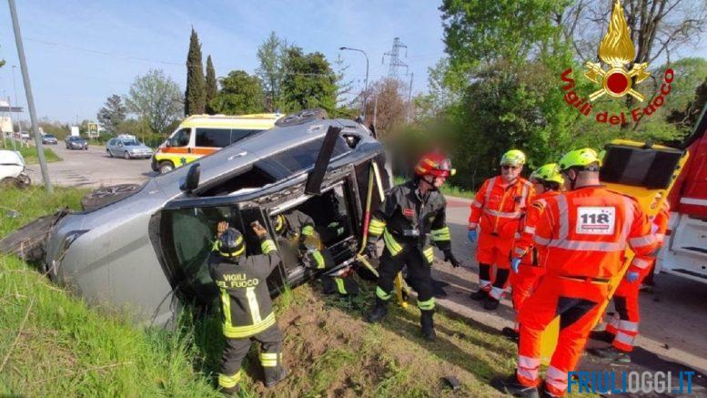 Alle ore 17.40 circa, una squadra dei Vigili del fuoco del comando di Pordenone, è intervenuta in Via Maestra Vecchia a Pordenone per un incidente stradale tra due autovetture una delle quali, ibrida, si è rovesciata su un fianco.