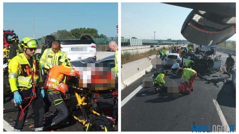 Il bilancio dell’incidente è di 9 mezzi coinvolti e 9 feriti. I vigili del fuoco accorsi da San Donà, Mestre e Treviso con tre autopompe e un’autogrù, hanno provveduto ad estrarre tre persone rimaste bloccate tra le lamiere delle auto. Altre sei le persone ferite. Tutti i coinvolti sono stati affidati alle cure del personale sanitario. Due persone ferite in maniera grave sono state elitrasportate in ospedale.