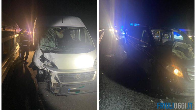 È di due morti e due feriti il bilancio del tragico incidente avvenuto poco dopo la mezzanotte sull’autostrada A4 nel tratto tra il Nodo di Palmanova e San Giorgio di Nogaro in direzione Venezia. A essere coinvolti due furgoni. L’impatto è avvenuto al chilometro 487 poco dopo la confluenza della A23 con la A4 dove ci sono quattro corsie e prima dell’area di servizio di Gonars.