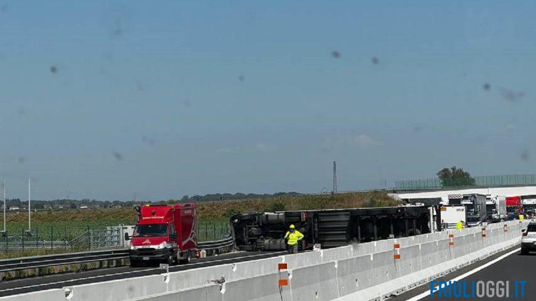 Un mezzo pesante si è rovesciato occupando le tre corsie della carreggiata in direzione Venezia. La dinamica è in corso di accertamento. Chiuso lo svincolo in ingresso a Latisana direzione Venezia. Per chi proviene da Trieste è stata predisposta l’uscita obbligatoria a Latisana.