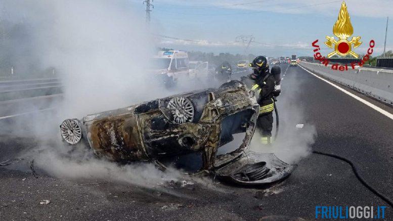 Il veicolo coincolto si è ribaltato e ha preso fuoco. I due occupanti dell’abitacolo sono riusciti a mettersi in salvo prima che l’auto prendesse fuoco. All’arrivo sul posto dei Vigili del fuoco, l’autovettura era capottata a centro carreggiata e avvolta dalle fiamme. I Vigili del fuoco hanno quindi provveduto ad estinguere il veicolo in fiamme per poi procedere alla messa in sicurezza del mezzo incidentato e dell’area del sinistro. Il bilancio è di una persona ferita per le contusioni a seguito del sinistro. Sul posto 118, vigili del fuoco, elisoccorso e personale di Autostrade Alto Adriatico.