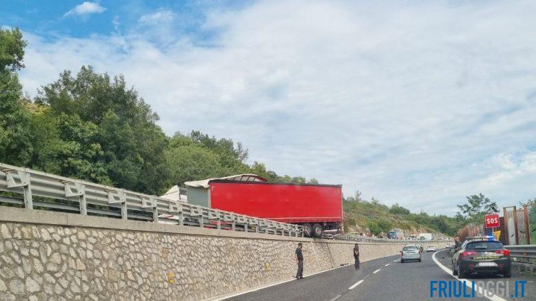 Non risultano feriti. Sul posto la polizia stradale, i vigili del fuoco, i mezzi di soccorso meccanico e il personale di Autovie Venete. E’ stato chiuso anche l’ingresso di Monfalcone Est in direzione Venezia. Per consentire lo spostamento dell’autoarticolato è stata chiusa anche la corsia di sorpasso tra Redipuglia e Monfalcone Est in direzione Trieste nel tratto incidentato. Allo stato attuale (ore 17 e 30) si registrano code tra la barriera di Villesse e Trieste Lisert in direzione Trieste.