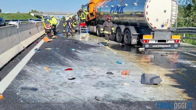 Un incidente tra due mezzi pesanti è accaduto poco dopo le 15 nel tratto tra Cessalto e San Stino di Livenza in direzione Trieste al chilometro 433. Nello schianto sono rimasti coinvolti un autoarticolato e un camion cisterna che trasportava alcol etilico e idrossido di sodio.