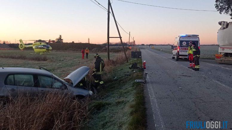Incidente stamattina sulla strada provinciale 3, lungo il tratto che porta tra Carlino e Marano: per cause in corso di accertamento, attorno alle 7.30 si sono scontrati un’auto e un camion cisterna, nei pressi dell’azienda agricola Girardello. Nell’urto, l’utilitaria è finita nel fosso a bordo carreggiata.