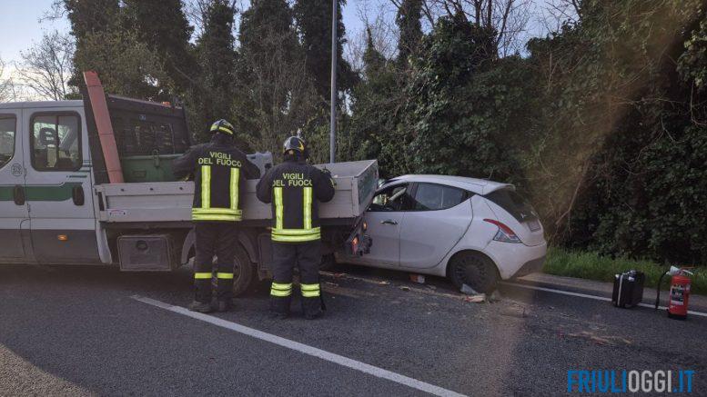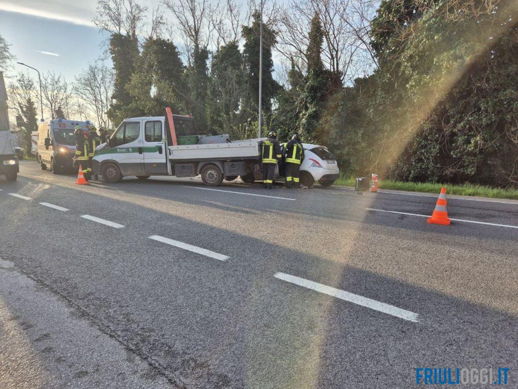 Incidente a Codroipo, finisce con l’auto sotto un furgone che trasporta gasolio: code e rallentamenti lungo la statale.