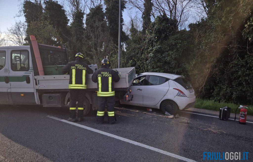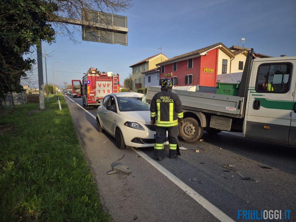 Incidente a Codroipo, finisce con l’auto sotto un furgone che trasporta gasolio: code e rallentamenti lungo la statale.