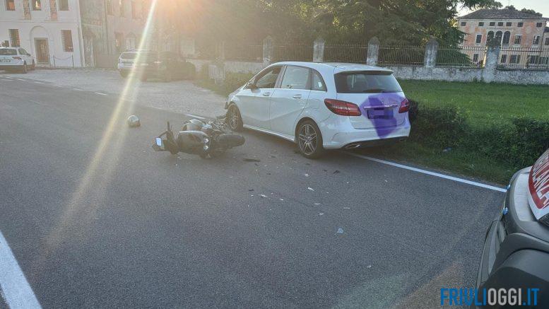 Violento incidente questo pomeriggio a San Martino di Codroipo. E’ successo intorno alle 19 di oggi in via Erminia, di fronte alla trattoria “Da Vanda”, dove uno scooter e un’auto sono rimasti coinvolti in uno scontro frontale.