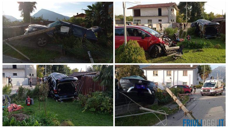 Violento incidente stradale nel pomeriggio di oggi a Gemona del Friuli. Intorno alle 16 e 30, per cause in corso di accertamento, due auto si sono scontrate all’incrocio tra via Cavazzo e via Majano. L’urto è stato tanto violento da far carambolare entrambe le vetture fuori dalla sede stradale, abbattendo un palo telefonico e terminando la corsa all’interno di un giardino privato.