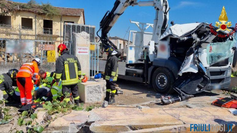 Incidente sul lavoro a Codroipo, nell’area di via Pordenone. Per cause in corso di accertamento da parte dei carabinieri della compagnia di Udine una pesante trave in cemento armato è caduto dall’alto durante la movimentazione con una macchina operatrice. La grossa trave che è finito sulla cabina di un camion all’interno del quale c’erano due uomini di circa 55 anni.