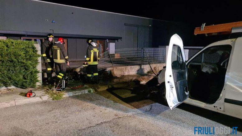 Incidente nella tarda serata di ieri a Majano, dove un furgoncino è finito contro un muro in via Falegname, nella zona industriale.