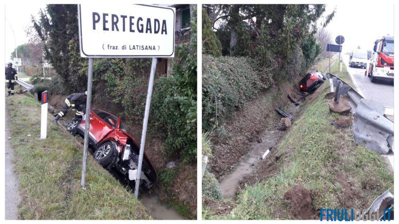 Per dinamiche ancora da chiarire, una vettura è uscita di strada, terminando la sua corsa in un fossato. Sul posto sono intervenuti i vigili del fuoco di Latisana assieme al personale sanitario.