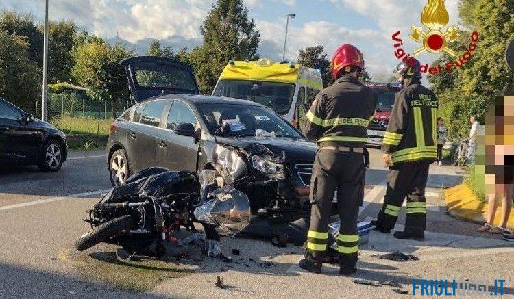 Incidente questo pomeriggio poco dopo le 16 e 30 a Pordenone. Per cause in corso di accertamento un’auto e una moto si sono scontrate in via Musile.