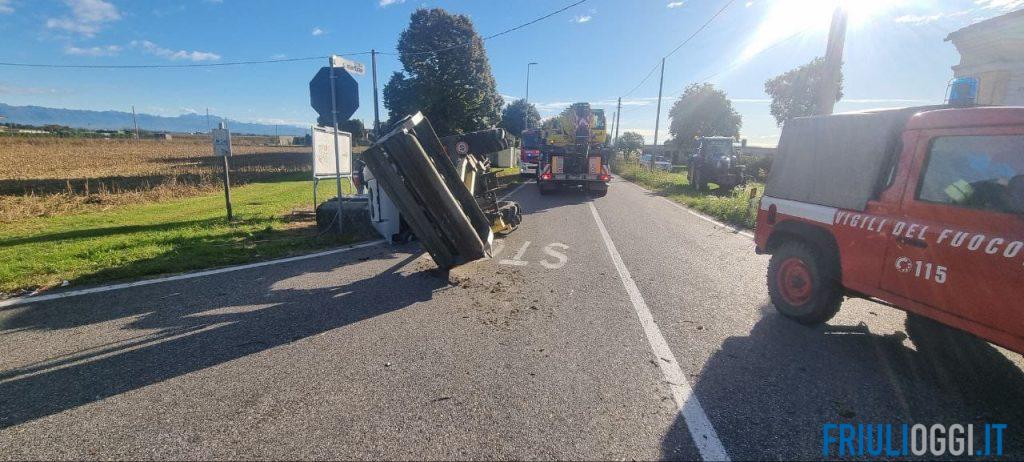 Incidente nella mattina di oggi, 7 ottobre, attorno alle 8.30, a Sedegliano all’incrocio tra via San Martino e la strada statale 463: per cause in corso di accertamento, un camion è finito contro un trattore, che si è ribaltato sul fianco riportando pesanti danni. Non ci sono stati feriti. Sul posto sono intervenuti i vigili del fuoco che si sono occupati della messa in sicurezza della strada dopo la fuoriuscita di liquami dal mezzo agricolo.