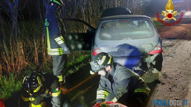 Incidente a Sesto al Renghena, auto senza controllo esce di strada e sbatte contro gli alberi: due feriti, incastrati nell’abitacolo.