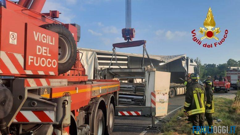 Giunta sul posto, la squadra del distaccamento di Opicina ha trovato un grosso camion che, perdendo il controllo, ha causato la fuoriuscita del carico che trasportava. Una volta accertato che non ci fossero feriti, la squadra ha provveduto alla messa in sicurezza del mezzo pesante e del suo carico. Operazione, questa, che ha richiesto l’utilizzo anche dell’autogru, giunta in rinforzo dalla Centrale. Sul posto, carabinieri e vigili urbani per i rilievi del caso.