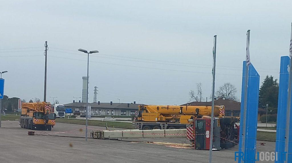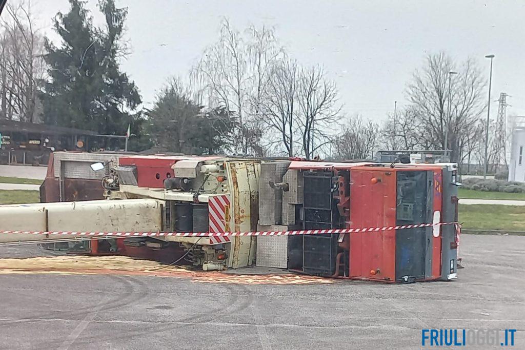 Incidente singolare a Spilimbergo dove un’autogru si è ribaltata su un fianco in un parcheggio della zona industriale nord. Il parcheggio è rimasto parzialmente chiuso e questa mattina sono in corso le operazioni di recupero per raddrizzare il mezzo pesante con l’ausilio di altre gru.