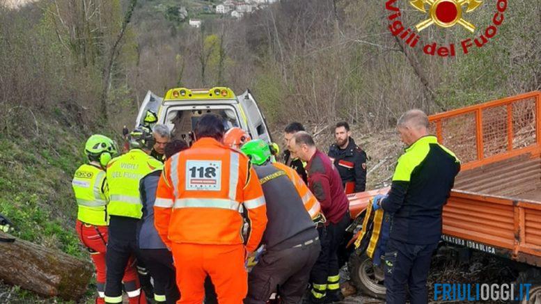 Per cause in corso di accertamento da parte dei carabinieri della Compagnia di Tolmezzo ha perso il controllo di un trattore che stava conducendo e ha riportato gravi lesioni.