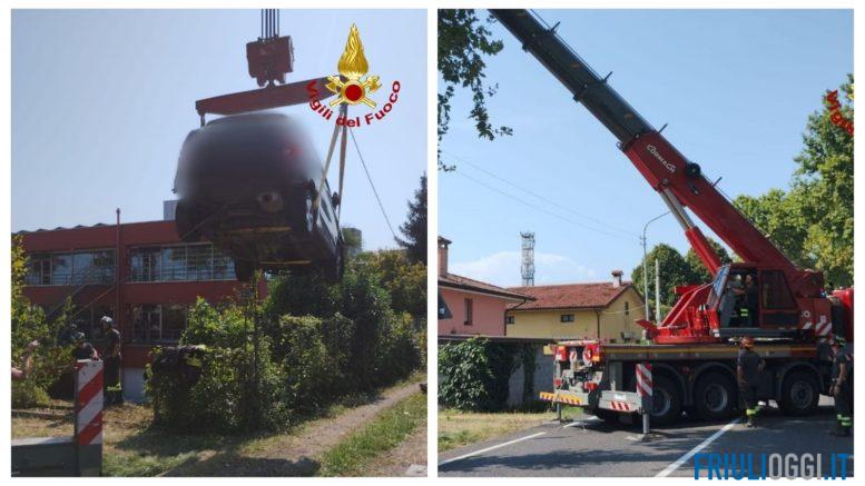 Una volta terminate le operazioni di soccorso alle persone, i pompieri hanno utilizzato l’autogru per recuperare il veicolo e riportarlo sulla sede stradale. Sul posto anche forze dell’ordine.