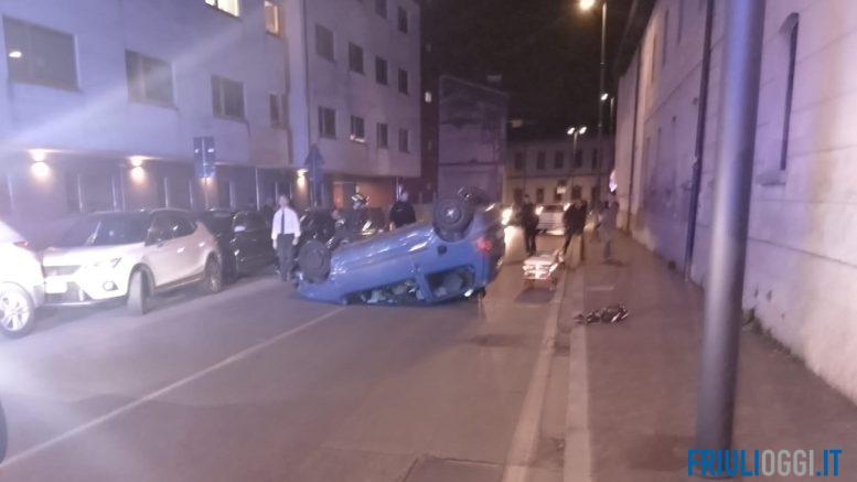 Incidente nella serata di ieri a Udine, dove un’auto si è ribaltata dopo aver urtato due veicoli in sosta. E’ accaduto intorno alle 22 in via Sant’Agostino.