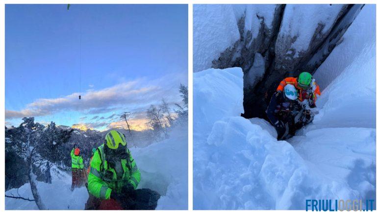 Il primo allarme è scattato poco prima delle 13 a Chiusaforte, nella zona di Sella Nevea. Una giovane sciatrice fuoripista di nazionalità slovena è precipitata in un profondo e stretto buco, di circa dieci metri, nei pressi del Rifugio Gilberti. La ragazza, fortunatamente rimasta illesa, è stata recuperata dall’elisoccorso regionale grazie a complesse manovre su corda. Fondamentale il supporto dei tecnici del Soccorso Alpino già presenti in servizio sulle piste, affiancati da altri soccorritori della stazione di Cave del Predil e dalla Guardia di Finanza.