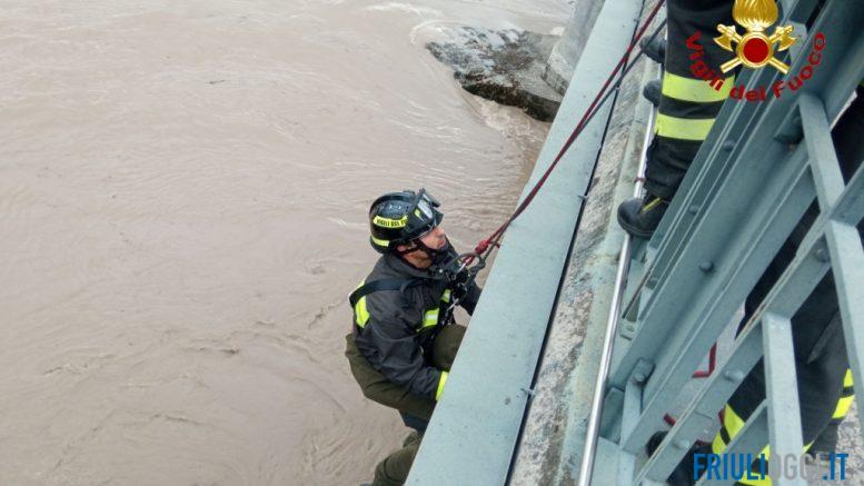 I vigili del fuoco giunti sul posto hanno individuato l’uomo, uno straniero di 35 anni, e dopo aver valutato la situazione hanno deciso di recuperare la persona issandola sul ponte. Dopo aver preparato la manovra di “calata e recupero” un vigile del fuoco è stato calato dal ponte fino a raggiungere l’uomo in pericolo che è stato imbragato e poi, assieme al soccorritore, è stato issato fino a raggiungere la strada.