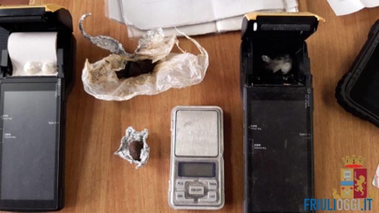 All’interno del locale, peraltro con tutti gli espositori ed i frigoriferi vuoti, privo di qualsiasi alimento o bevanda destinati alla somministrazione o vendita, si rinvenivano due involucri di hashish, sul bancone della cucina, nascosti tra rotoli di carta stagnola e di cellophane, usati per il confezionamento delle dosi, per un peso netto complessivo di 30,4 grammi, e tre dosi già confezionate e pronte alla vendita di cocaina, per circa 1 grammo, nascoste all’interno dei dispositivi per il pagamento elettronico, più un bilancino digitale di precisione.