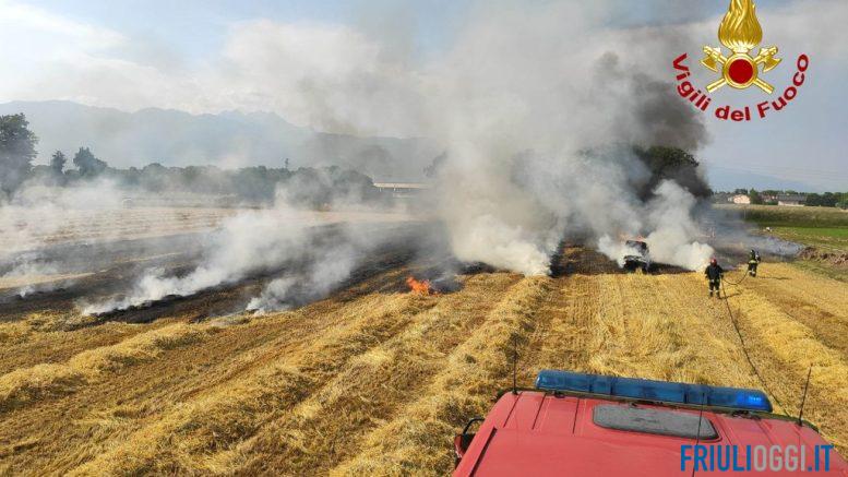 Incendio di una macchina agricola, a rischio i campi secchi: l’intervento dei vigili del fuoco riesce a evitare il peggio.