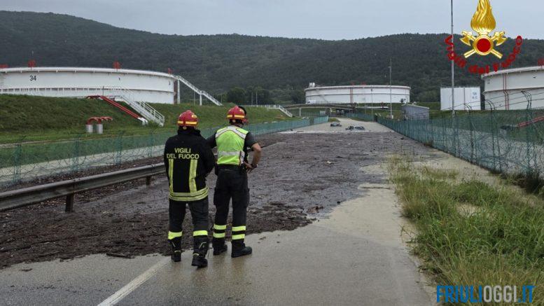 Sul territorio stanno operando tre squadre dei vigili del fuoco (una proveniente dal distaccamento di Muggia e due dalla sede centrale di Trieste), supportate da motopompe ed elettropompe, oltre a tre funzionari tecnici incaricati dei sopralluoghi per coordinare gli interventi.