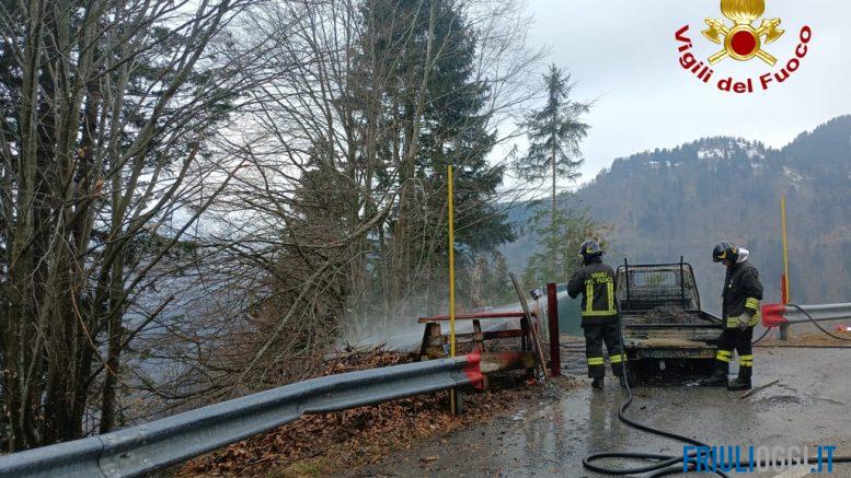 I pompieri carnici giunti sul posto hanno spento le fiamme che ormai avevano avvolto completamente il motocarro e si stavano propagando agli alberi e al sottobosco ai bordi della strada dove si era incendiato il mezzo. Terminata la fase di spegnimento i Vigili del fuoco tolmezzini hanno provveduto a bonificare e mettere in sicurezza il veicolo e tutta l’area circostante controllando che nel sottobosco non vi fosse qualche tizzone nascosto con il conseguente pericolo di innesco per un incendio boschivo. Ancora in fase di accertamento le cause dell’incendio che non ha coinvolto persone.