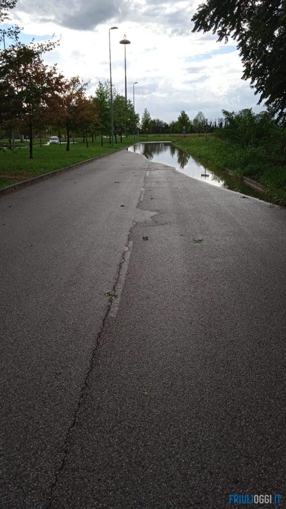 Strade allagate a Pavia di Udine in particolare via Marconi e via Garibaldi, con 30 centimetri d’acqua che hanno bloccato la circolazione dei veicoli. La viabilità interessata dall’allagamento è stata transennata e sono stati posizionati i segnali di pericolo. Alcune vetture sono rimaste bloccate, poi la situazione è rientrata.