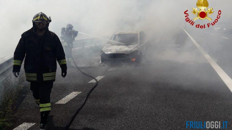 Paura in autostrada, auto prende improvvisamente fuoco. Alle 11.30 circa di oggi, sabato 24, una squadra dei vigili del fuoco del comando di Udine è intervenuta sull’Autostrada A23 nel tratto tra le uscite di Udine Nord e Gemona Osoppo per l’incendio di un autovettura.