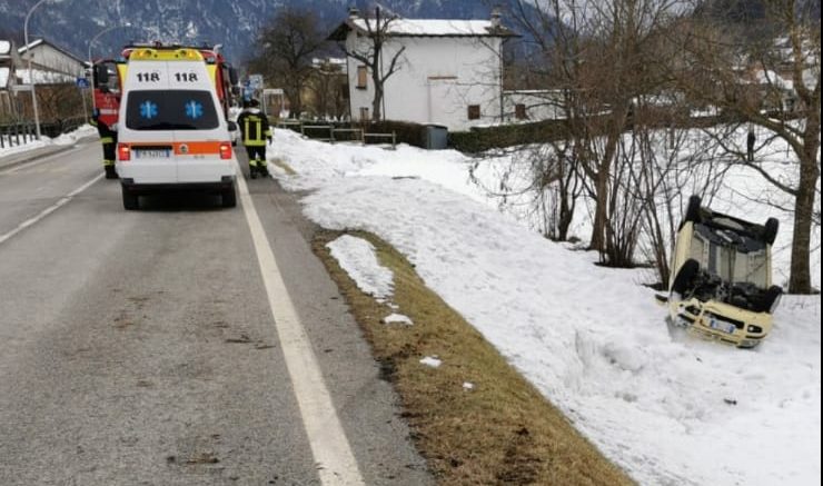 Ha perso il controllo dell’auto ed è finita fuori strada con le ruote all’aria in un prato. L’incidente è successo verso le 15 di oggi pomeriggio, lungo la statale 52 bis all’altezza di Cadunea di Tolmezzo.