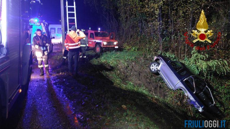 Incidente stradale, questo pomeriggio, a Castelnovo del Friuli: in località Ceschies, nei pressi della casa degli Alpini, un uomo ha perso il controllo dell’auto che ha terminato la corsa sul pendio del fosso a bordo strada, pericolosamente inclinata sul fianco, impedendo l’uscita del conducente.