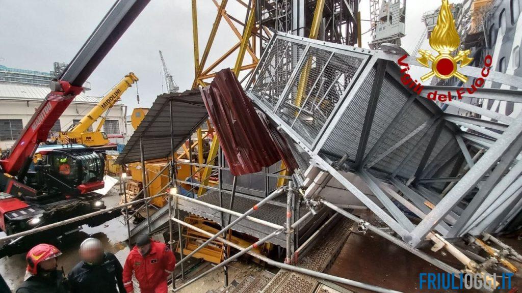 Attivati anche i sommozzatori dei vigili del fuoco provenienti da Trieste che, al momento, stanno compiendo una serie di immersioni nell’area adiacente all’incidente, per escludere la presenza di ulteriori coinvolti. Analoghe ricerche si stanno compiendo a terra sotto il ponteggio crollato. In corso anche le operazioni di messa in sicurezza di parti ancora instabili.