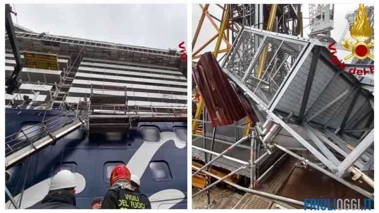 I Vigili del fuoco di Monfalcone sono intervenuti verso le ore 8:30 del 19 gennaio 2024 per un incidente avvenuto nell’area dei cantieri navali di Fincantieri. Per cause ancora sconosciute un ponteggio è crollato coinvolgendo alcuni operai.