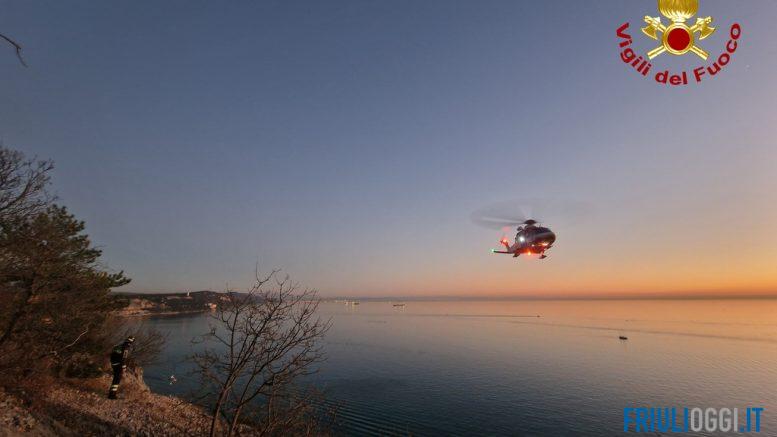 Alle operazioni hanno partecipato la squadra del distaccamento di Opicina, la squadra SAF (Speleo Alpino Fluviale), il Funzionario di guardia, i sommozzatori del NSSA (Nucleo Soccorso Subacqueo Acquatico) partiti dal distaccamento del Porto Vecchio con una propria imbarcazione, due unità del Nucleo Cinofilo Regionale giunte dal comando di Gorizia e l’elicottero Drago del Reparto Volo di Venezia. Sul posto hanno operato anche i Carabinieri, collaborando nelle operazioni di ricerca. Alle ore 17.05, la donna è stata ritrovata in buone condizioni di salute nella zona di Sistiana Mare.