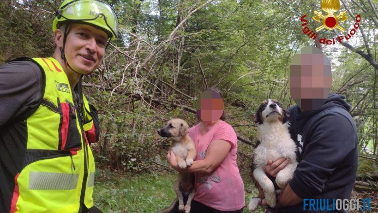 Nel tardo pomeriggio di ieri i vigili del fuoco del distaccamento di Tolmezzo sono intervenuti presso la Forra del Pichions nel comune di Lauco per soccorrere due cuccioli di pastore bernese.