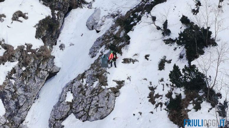 È qui che una donna di trentatré anni del gemonese ha perso aderenza sulla neve ghiacciata ed è scivolata per diversi metri lungo un canalone anch’esso ghiacciato, fermandosi fortunatamente proprio poco sopra un salto di rocce, grazie alla neve più morbida che nell’ultimo tratto ne ha rallentato la scivolata. La donna ha riferito di aver perso durante la caduta le catenelle – che comunque sui pendii di neve ghiacciata non sono adatte, perché non hanno sufficiente tenuta e non evitano scivolate – che indossava sotto la suola delle calzature.