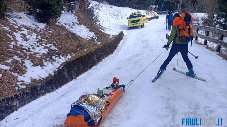 Nello stesso momento è arrivata un’altra chiamata al Nue112 dalla strada che conduce ai Piani del Montasio lungo la quale, in prossimità di una delle curve, un uomo di 59 anni della Bassa Friulana era scivolato in discesa, anche lui sulla neve ghiacciata, impattando al suolo e riportando la frattura di una caviglia. La Sores ha attivato la stazione di Cave del Predil del Soccorso Alpino, la Guardia di Finanza e l’ambulanza.
