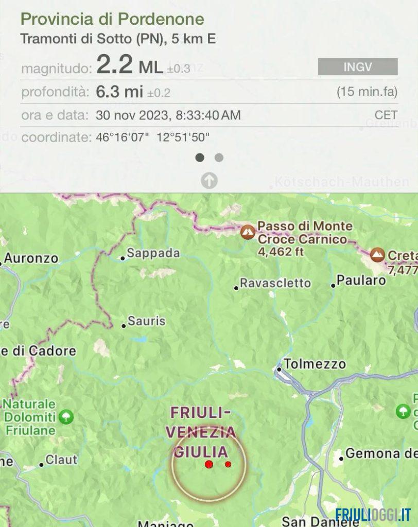Una scossa di terremoto si è verificata questa mattina in Friuli. Il sisma, di magnitudo 2.2, è stato registrato dai sismografi dell’Istituto italiano di geofisica e vulcanologia alle 8 e 33 con epicentro nell’area di Tramonti di Sotto (a 5 km a est) e ad una profondità di 10 chilometri.
