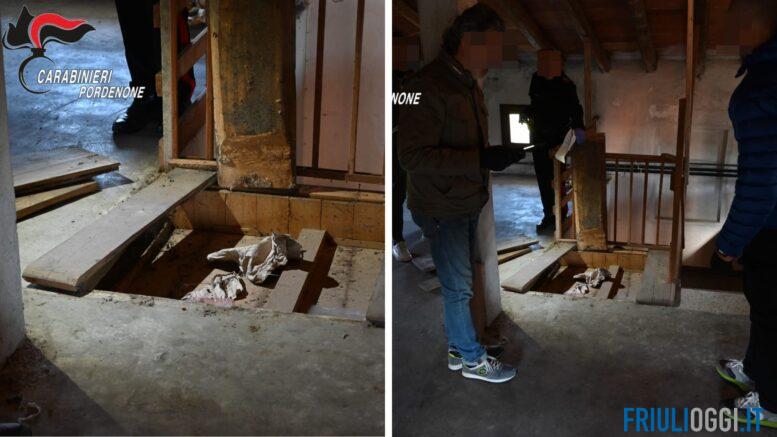 Determinante si è rivelato il supporto di un’unità cinofila della Polizia Locale di Azzano Decimo, che ha consentito di individuare un nascondiglio particolarmente ingegnoso: una finta botola ricavata nel pavimento della soffitta. All’interno, i militari hanno rinvenuto circa 740 grammi di cocaina, oltre a un bilancino di precisione e a diverso materiale utilizzato per il confezionamento delle dosi.
