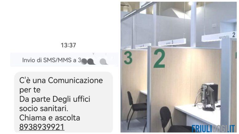 I “geni” della truffa non dormono mai ed escogitano sempre più metodi per cercare di danneggiare ignari cittadini; l’ultima trovata infatti pare proprio andare a colpire una sfera che sta particolarmente a cuore agli utenti: la salute; oggi, infatti, un cittadino friulano ha ricevuto un sms da un numero telefonico corrispondente ad un cellulare, con il messaggio “C’è una comunicazione per te da parte degli uffici socio sanitari”, con un numero telefonico da richiamare.