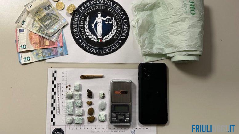 Nei giorni scorsi, durante un ininterrotto monitoraggio durato più giorni presso la stazione degli autobus di Tolmezzo e zone confinanti, aree queste costantemente sotto osservazione, la Polizia Locale della Comunità di montagna della Carnia ha rintracciato e fermato un giovane ventiquattrenne di origini iraniane che si aggirava nei pressi della stazione, dove si è appurato che eseguiva quotidianamente plurimi scambi di sostanza stupefacente rivolti prevalentemente ad una clientela di minorenni, sia italiani che stranieri.