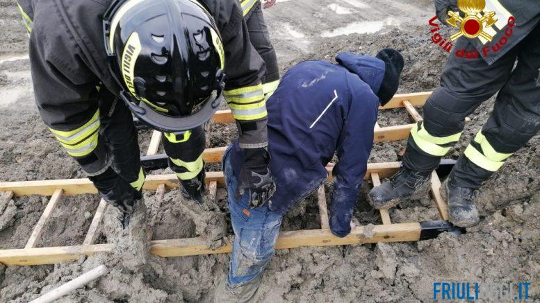 I Vigili del fuoco accorsi sul posto hanno trovato un tecnico con una gamba sprofondata nel terreno argilloso impossibilitato a liberarsi. I pompieri hanno provveduto a sistemare sul terreno alcuni pezzi di scala, evitando così di sprofondare a loro volta nel terreno, e aiutandosi con alcune pale hanno scavato togliendo l’argilla che bloccava l’arto dell’uomo liberandolo dalla morsa del terreno.